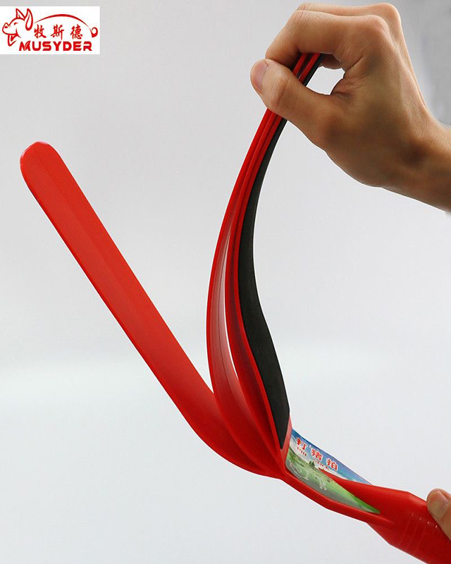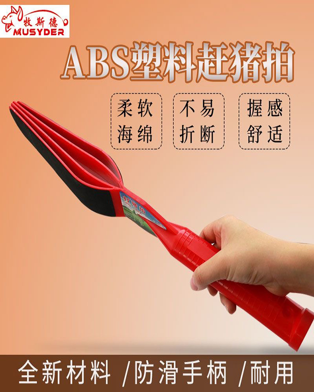 香港正牌资料大全短柄赶猪拍,采用ABS和海绵材料制作,回弹性强,不易折断;内置四层叶片互相敲打产生声音,外层附有柔软海绵,有效驱赶不伤猪只;手柄带孔设计可挂绳,随时方便养殖人员使用。